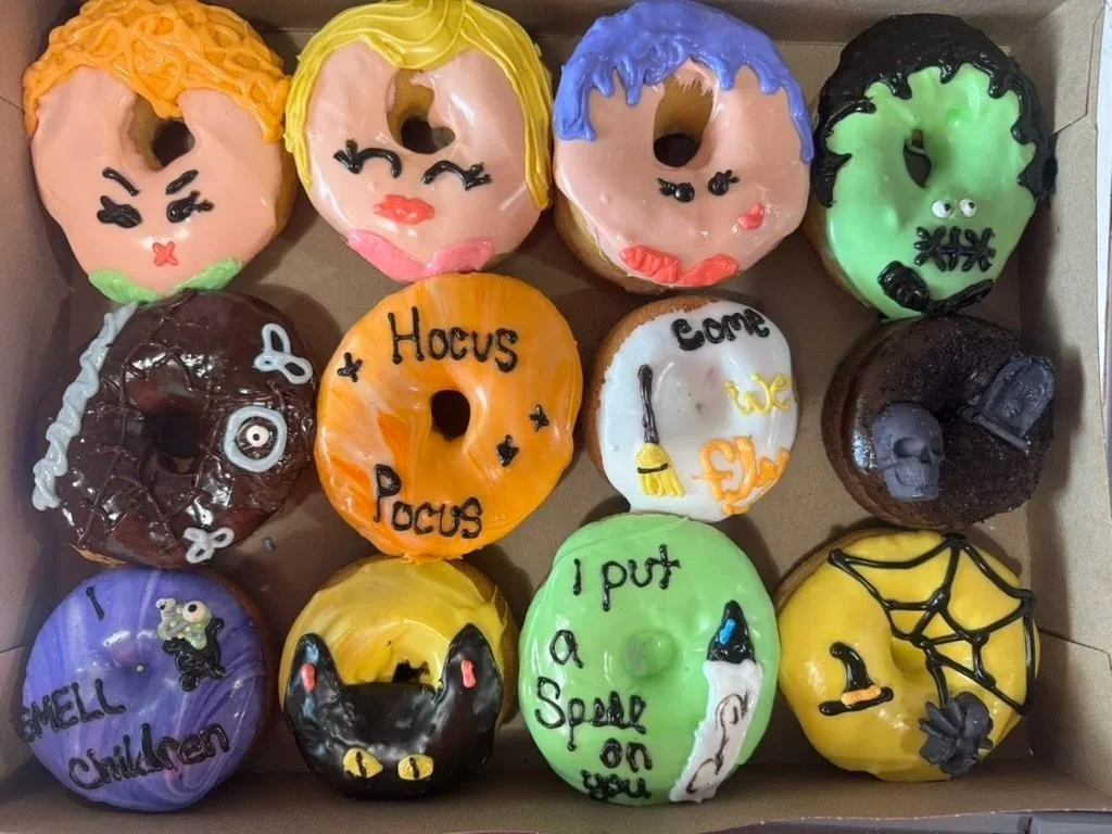 It’s time to pick your Halloween Donuts! We’re super excited to introduce you to our Hocus Pocus donuts as our Premium Halloween theme this year, available in a dozen AND a 6-pack. While we can’t guarantee what will go in each 6-pack we promise to make it a uniquely fun mixture. Choose your available date and time for your pick up!